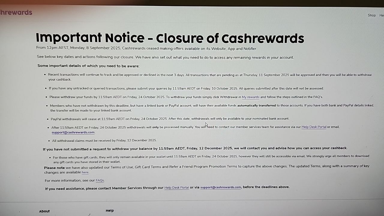 اتفاقات مالی در نیمکره جنوبی کمی عجیب غریب و ترسناک شده Cash Rewards با دو میلیون کاربر امروز بطور ناگهانی اعلام کرد، فعالیتش متوقف می شود! #استرالیا